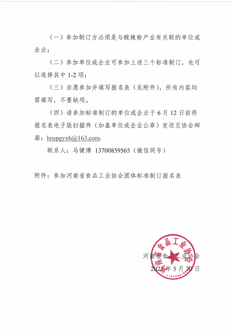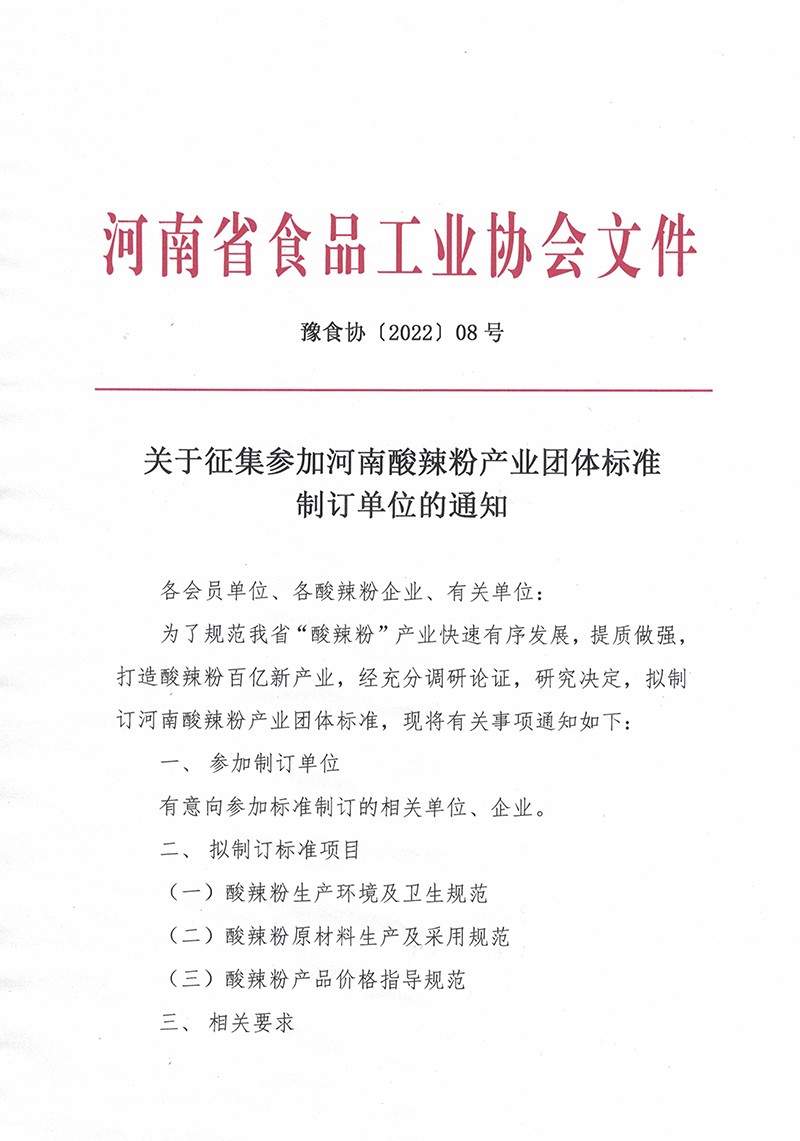 关于征集参加河南酸辣粉产业团体标准制订单位的通知